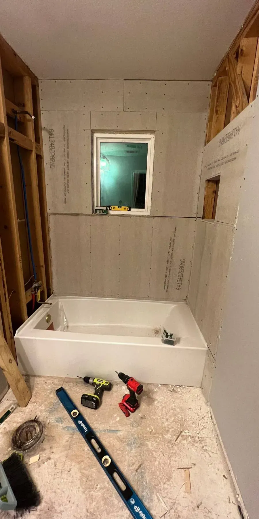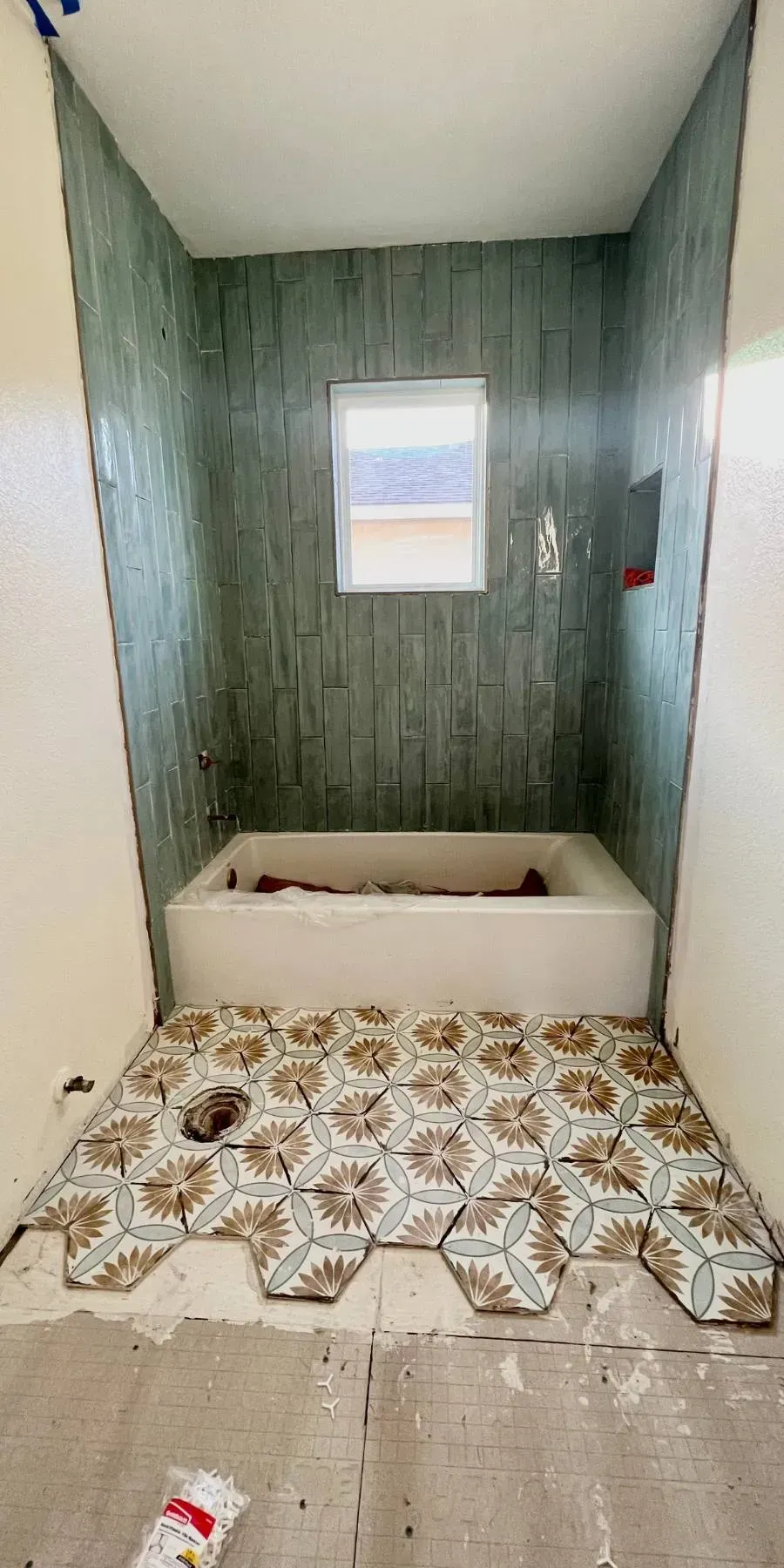 This bathroom was outdated and in need of a full refresh. We started by removing the old tub, tile, and flooring, then rebuilt the space from the ground up. New cement board and waterproofing were installed to create a solid foundation, followed by a modern bathtub, custom tile surround, and patterned floor tile for a fresh look. The vanity, fixtures, and finishes were updated to complete the transformation. The result is a clean, functional bathroom that feels brand new and ready for everyday use.