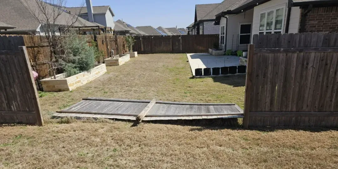 This backyard fence had broken panels and leaning posts that no longer provided security. We replaced damaged posts, reinforced the structure, and repaired the fallen sections before staining for a clean finish. The result is a stronger, longer-lasting fence that improves both privacy and curb appeal.
