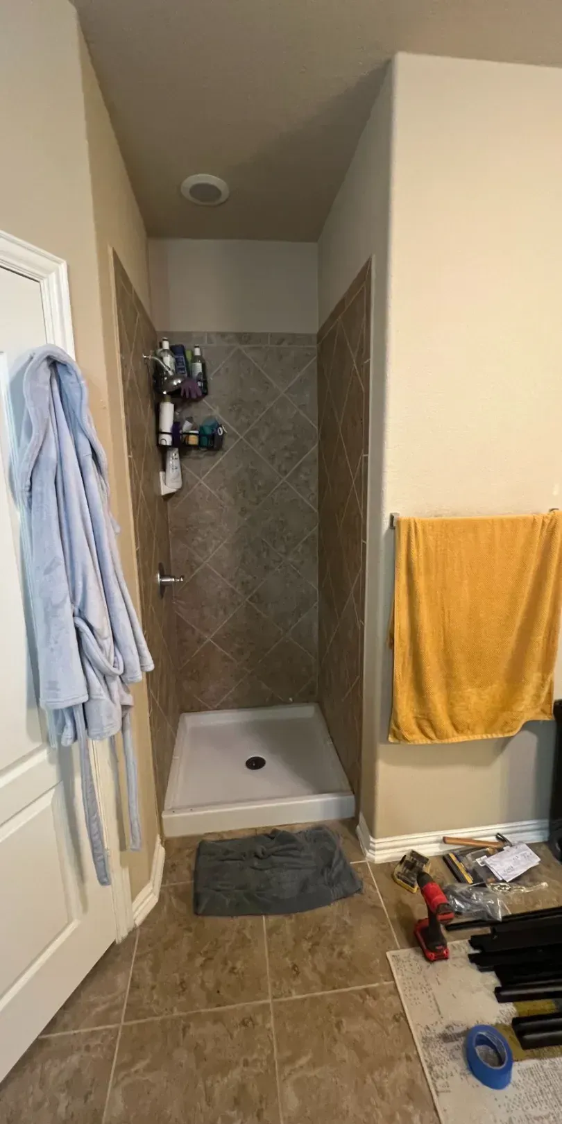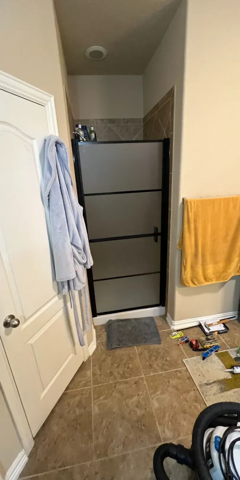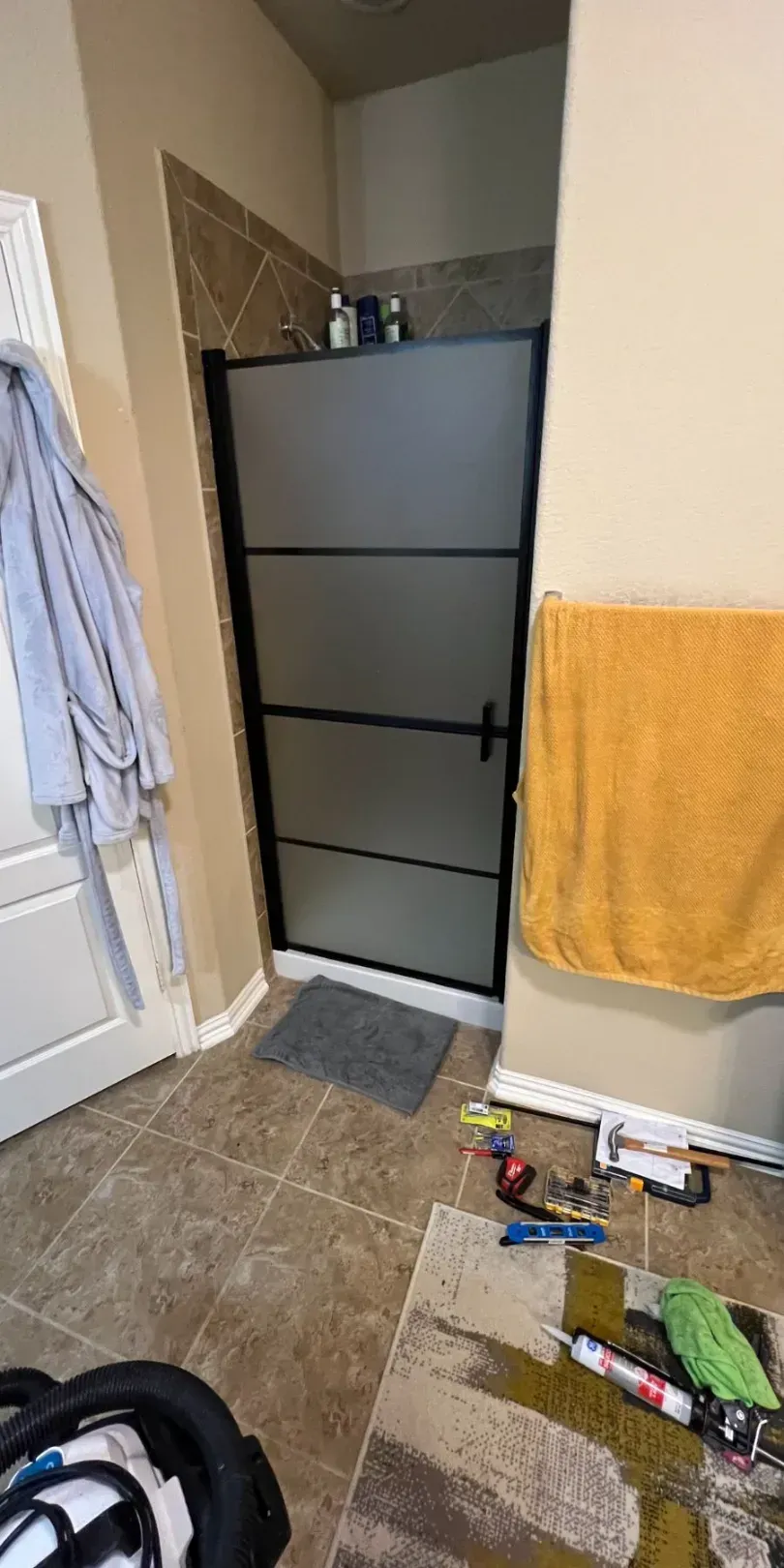 The homeowner’s old shower door had seen better days and needed an update. We removed the worn frame and glass, prepped the area, and installed a sleek new shower door with a modern black finish. The upgrade not only improved durability but also gave the bathroom a fresh, stylish look.